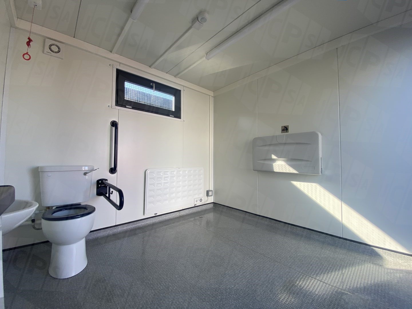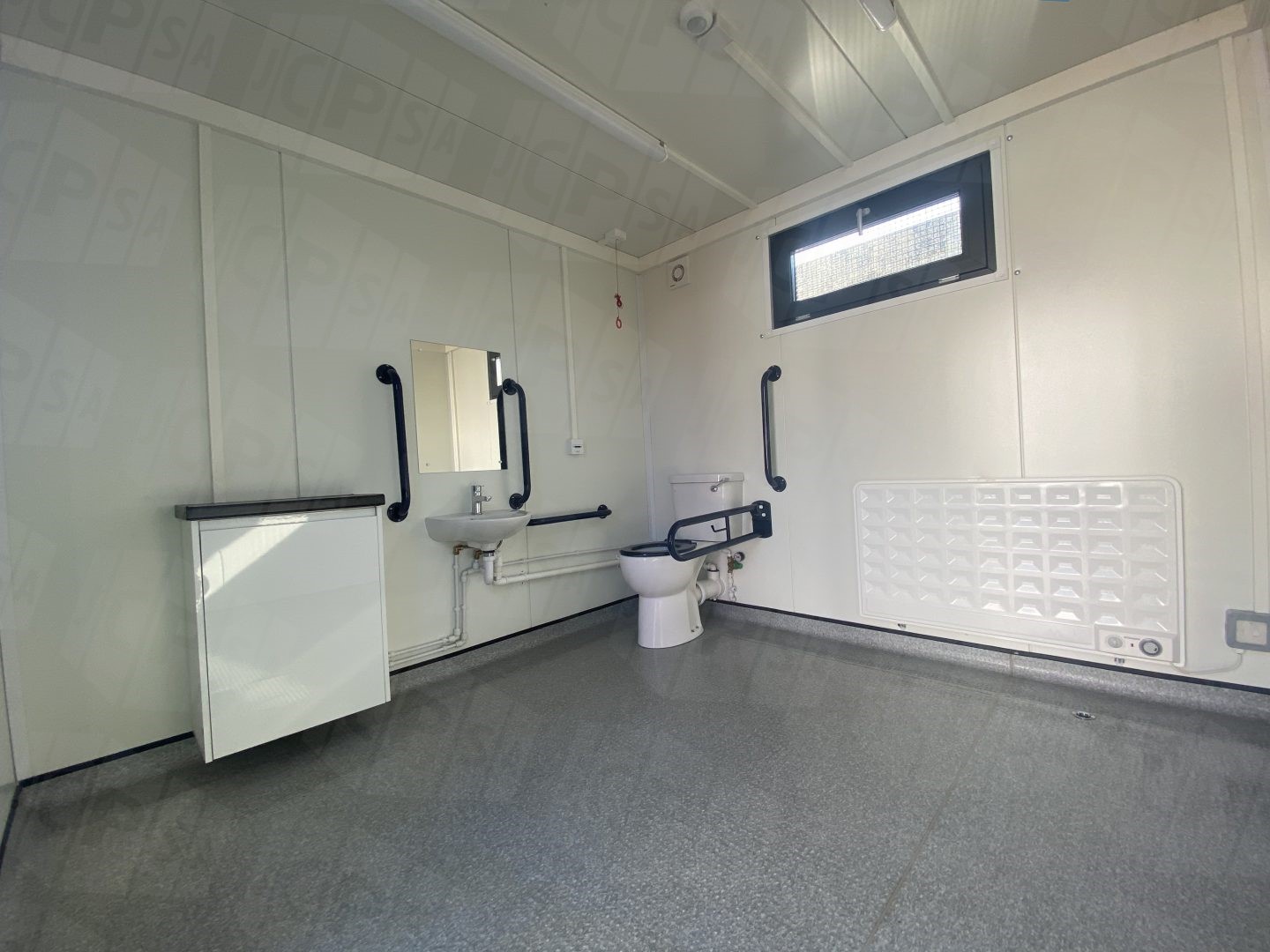 10ft x 10ft Portable Disabled Toilet Unit - DDA Compliant This new build Disabled Toilet Unit is a JCPSA Exclusive product. Constructed entirely by us, you can be sure to purchase with confidence. Our Disabled Toilet Units are manufactured with all required features to be compliant with the Disability Discrimination Act of 2005. Want to take a look around for yourself? With our 360º picture of the room inside, you can do just that!